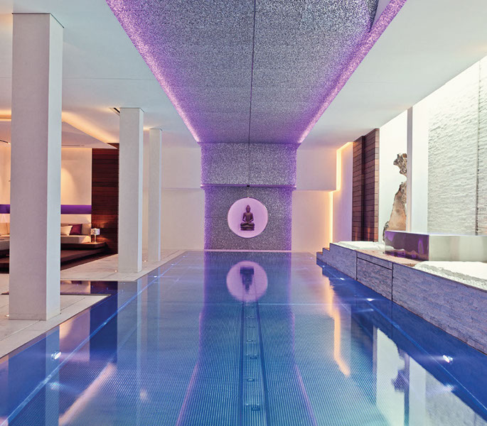 Bei diesem hochwertigen Objekt verwendeten wir im Steinbruch vorsortiertes weißes Natursteinmaterial mit den unterschiedlichsten Oberflächen, wie z. B. geschliffen, gestockt, gespalten und gebürstet.